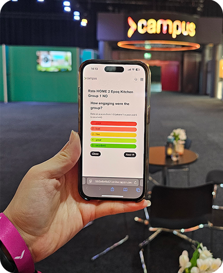 Tappin gjør hybride arrangementer sømløse. Enten folk er live i salen eller på nettet, føles opplevelsen lik. Vi er Your Event Solution for hybride arrangementer.